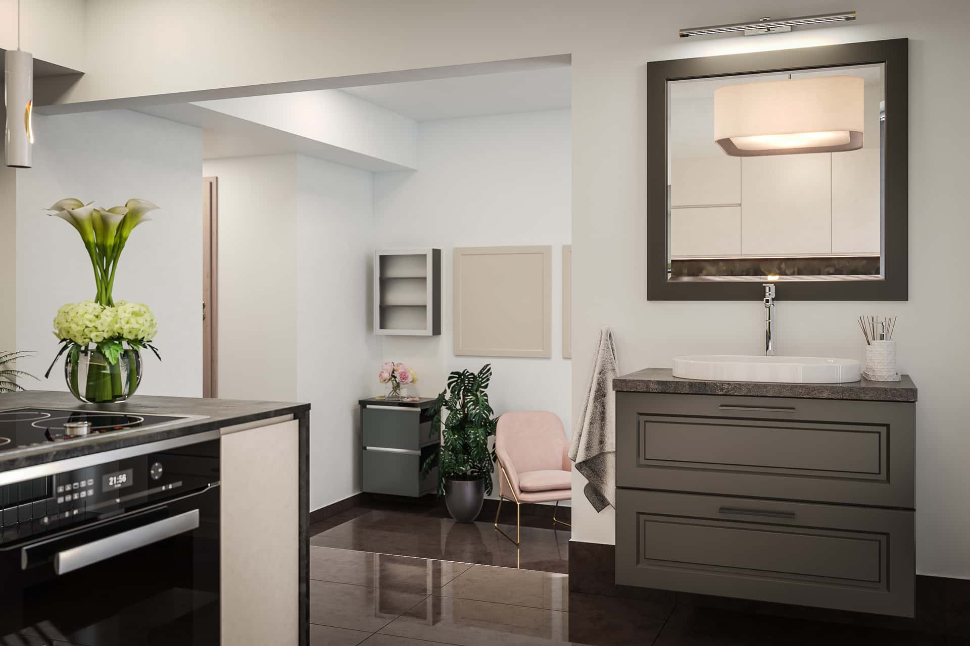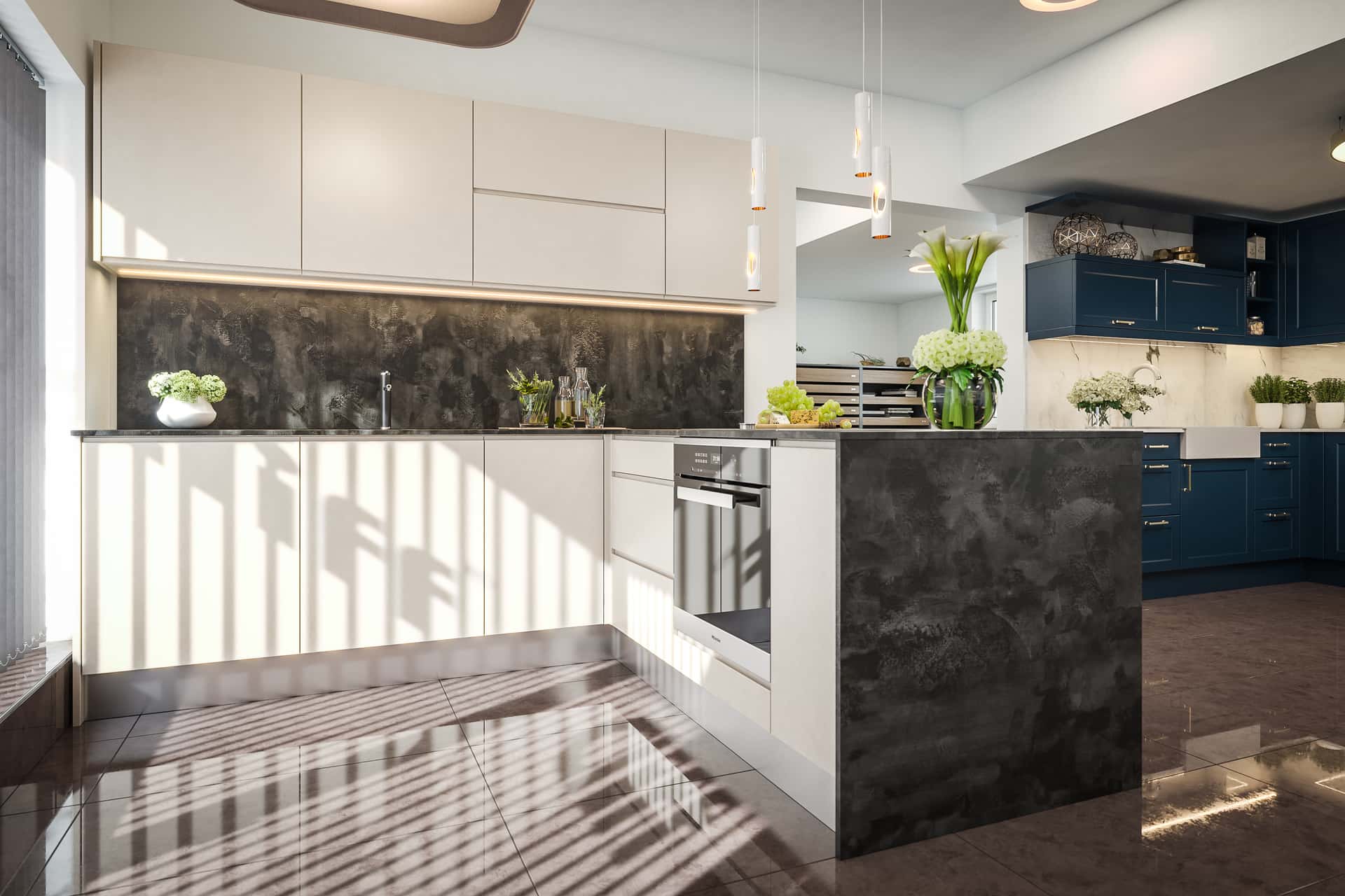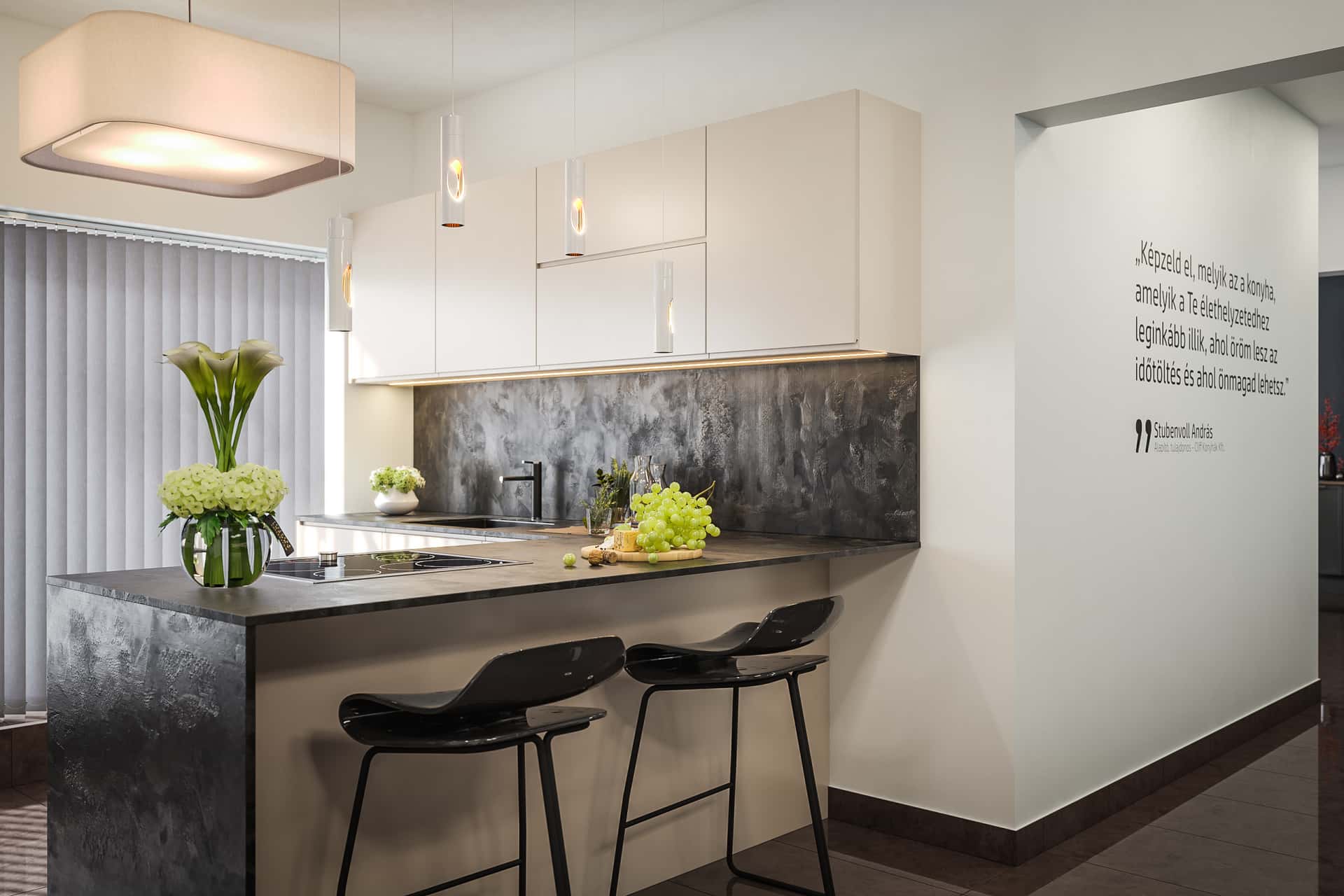 3D-s látványtervekkel segítünk neked abban, hogy már a tervezési időszakban könnyen elképzelhesd, milyen lesz a konyhabútorod, amikor elkészül.