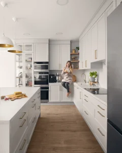 Győrbe, Suga Paulina otthonába készült ez a konyhánk, ami különösen nagy kihívás volt, hiszen tudjátok, hogy Paulina rengeteget süt, sok tároló helyre is van szüksége hozzá ugyanakkor a konyhájának meg kellett őrizni az otthonosságát kisgyermekes családként a hétköznapokban is.